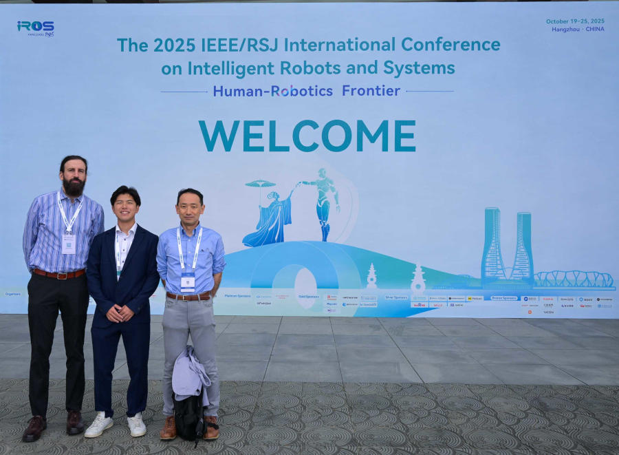 本研究室の高森さんとPacoさんが中国の浙江省で開催されたIROS 2025に参加しました. ロボット分野のトップカンファレンスであるIROSで発表を行うという貴重な経験ができたそうで,とても良かったです. 今後の研究も頑張ってください!